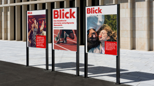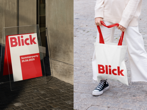 Eine der auffälligsten Veränderungen ist die Modernisierung des Logos, das nun aus der traditionellen roten Box entfernt wurde und neu auf einem weissen Hintergrund steht, der als Bühne fungiert und durch seine frische Gestaltung einen starken visuellen Eindruck hinterlässt. Der Einsatz von Rot und Weiss spielt eine zentrale Rolle und rückt den Menschen in den Fokus. Warme Farbtöne unterstreichen das Motto «Blick ist mittendrin».